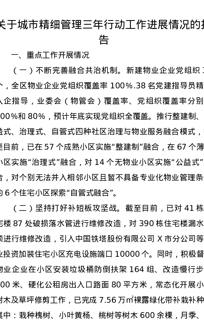 关于城市精细管理三年行动工作进展情况的报告