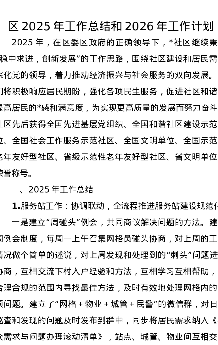 区2025年工作总结和2026年工作计划