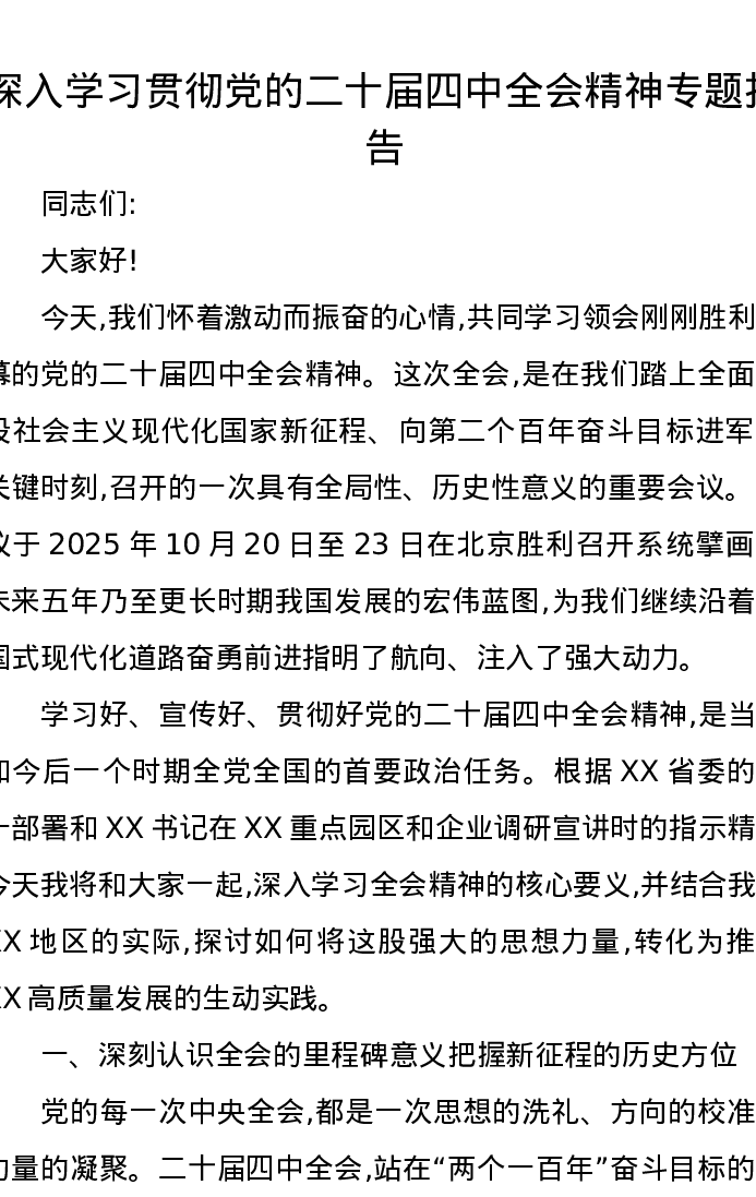 深入学习贯彻党的二十届四中全会精神专题报告