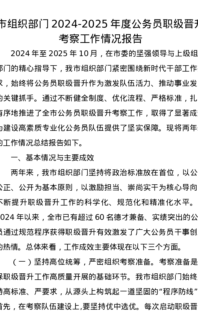 市组织部门2024-2025年度公务员职级晋升考察工作情况报告