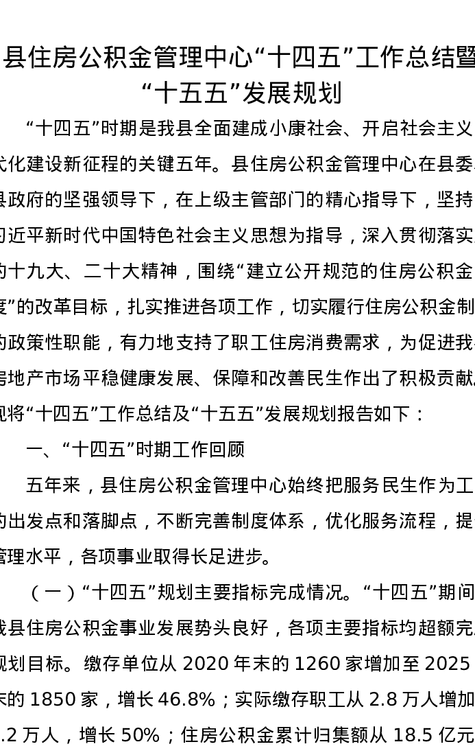 县住房公积金管理中心“十四五”工作总结暨“十五五”发展规划