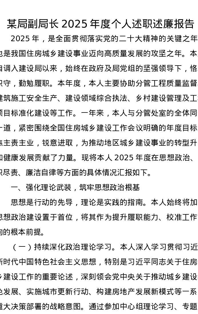 某局副局长2025年度个人述职述廉报告