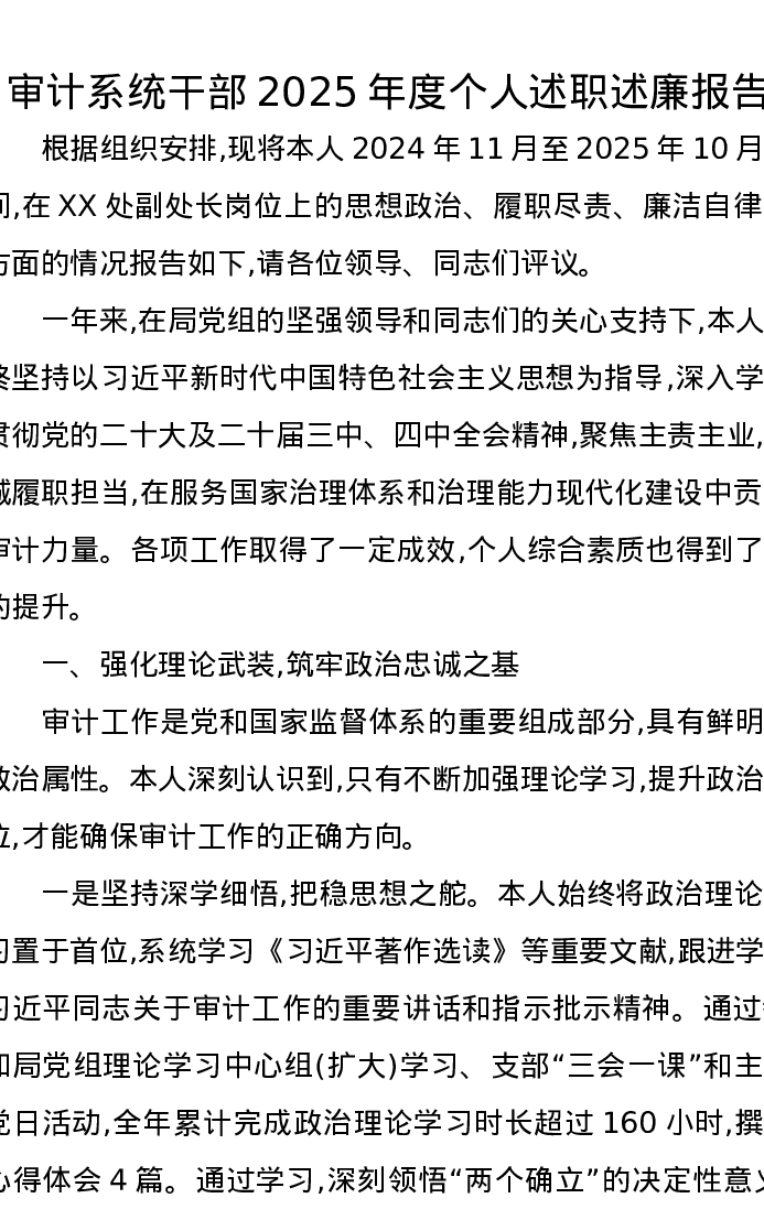 审计系统干部2025年度个人述职述廉报告