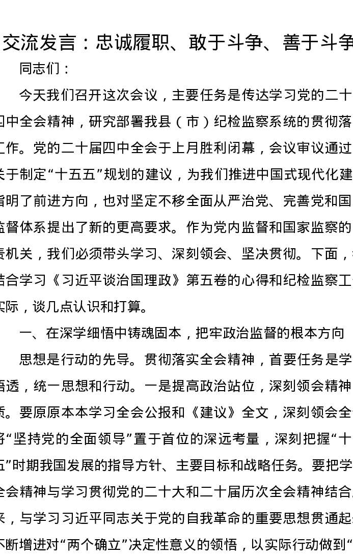 交流发言:忠诚履职、敢于斗争、善于斗争