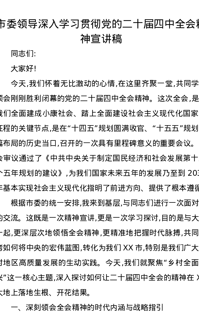 市委领导深入学习贯彻党的二十届四中全会精神宣讲稿