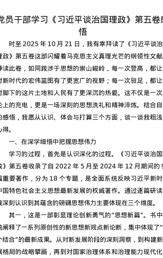 党员干部学习《习近平谈治国理政》第五卷心得感悟