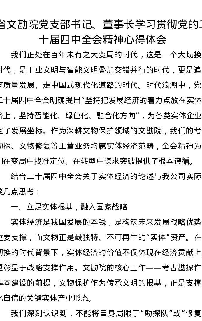 省文勘院党支部书记、董事长学习贯彻党的二十届四中全会精神心得体会