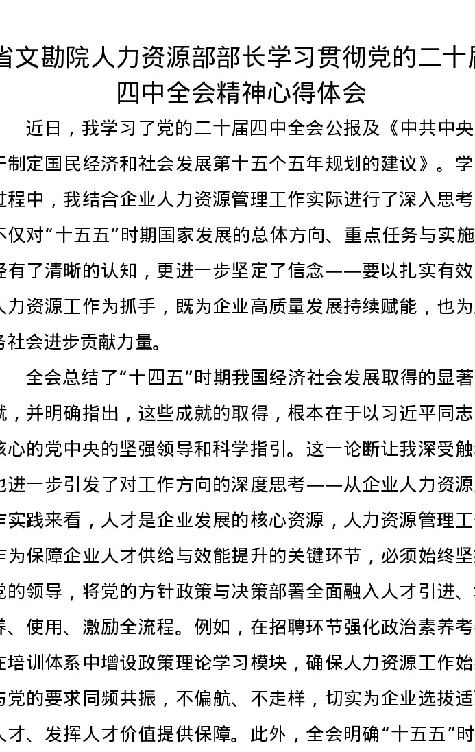 省文勘院人力资源部部长学习贯彻党的二十届四中全会精神心得体会