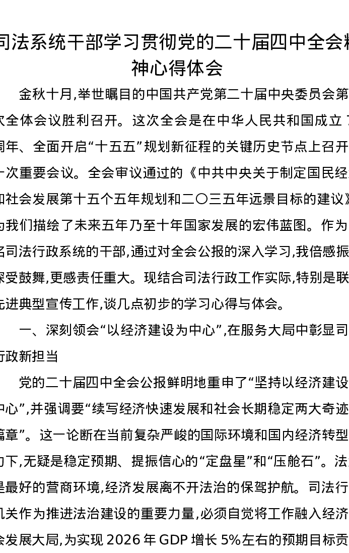 司法系统干部学习贯彻党的二十届四中全会精神心得体会
