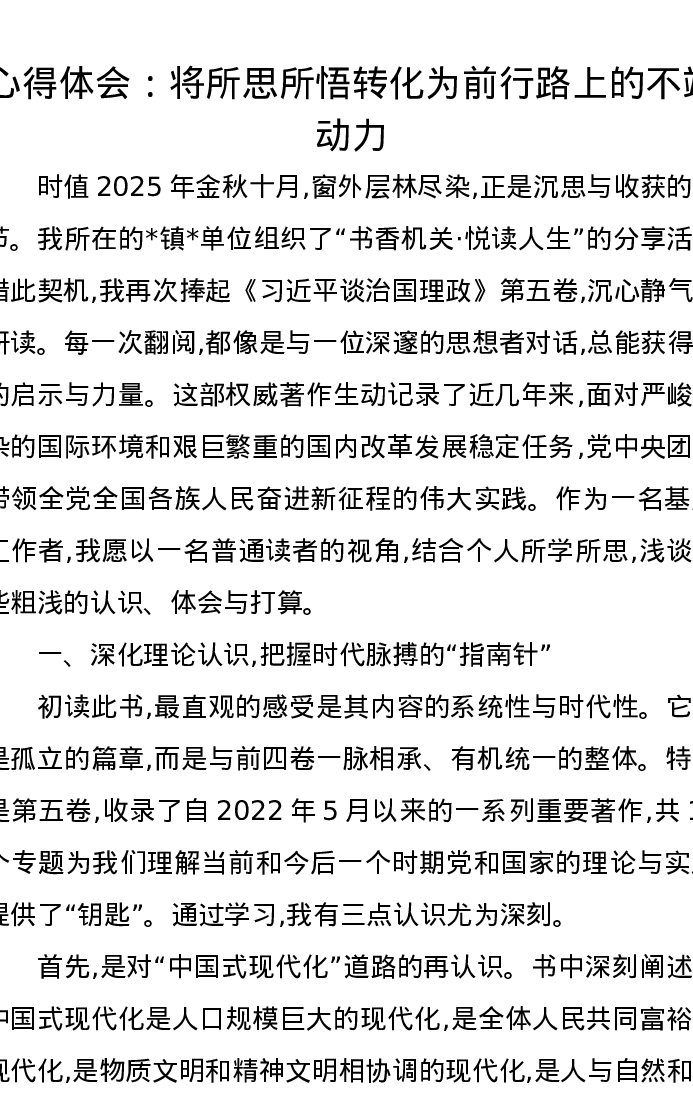 心得体会:将所思所悟转化为前行路上的不竭动力