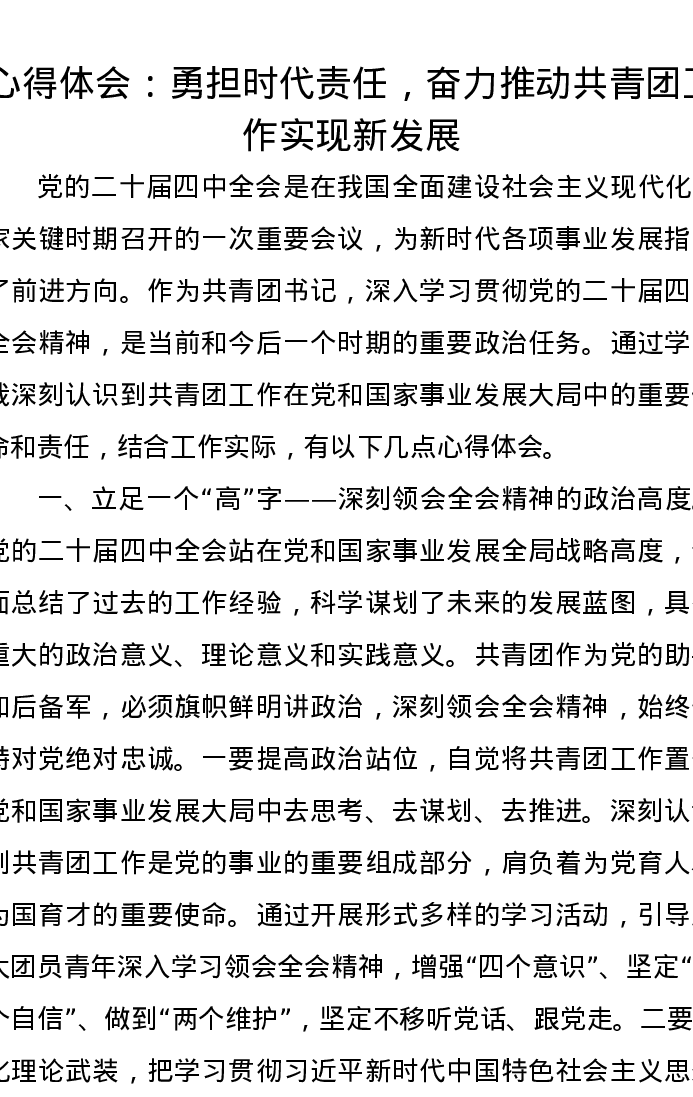 心得体会:勇担时代责任,奋力推动共青团工作实现新发展