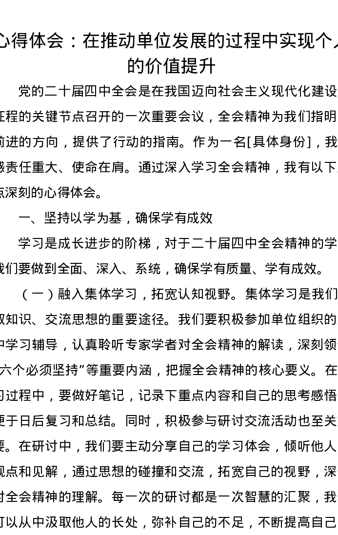 心得体会:在推动单位发展的过程中实现个人的价值提升