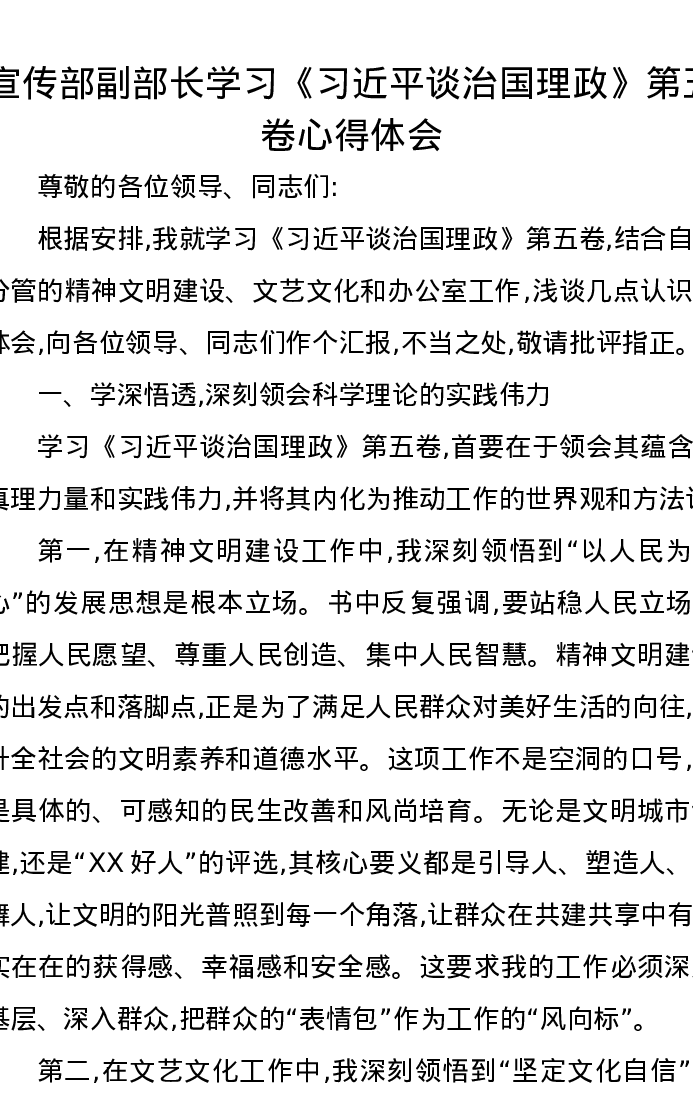 宣传部副部长学习《习近平谈治国理政》第五卷心得体会
