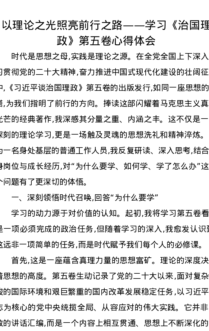 以理论之光照亮前行之路——学习《治国理政》第五卷心得体会