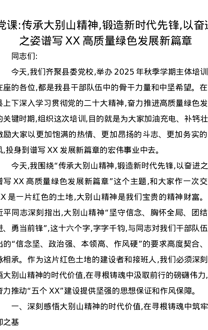 党课讲稿:传承大别山精神,锻造新时代先锋,以奋进之姿谱写XX高质量绿色发展新篇章
