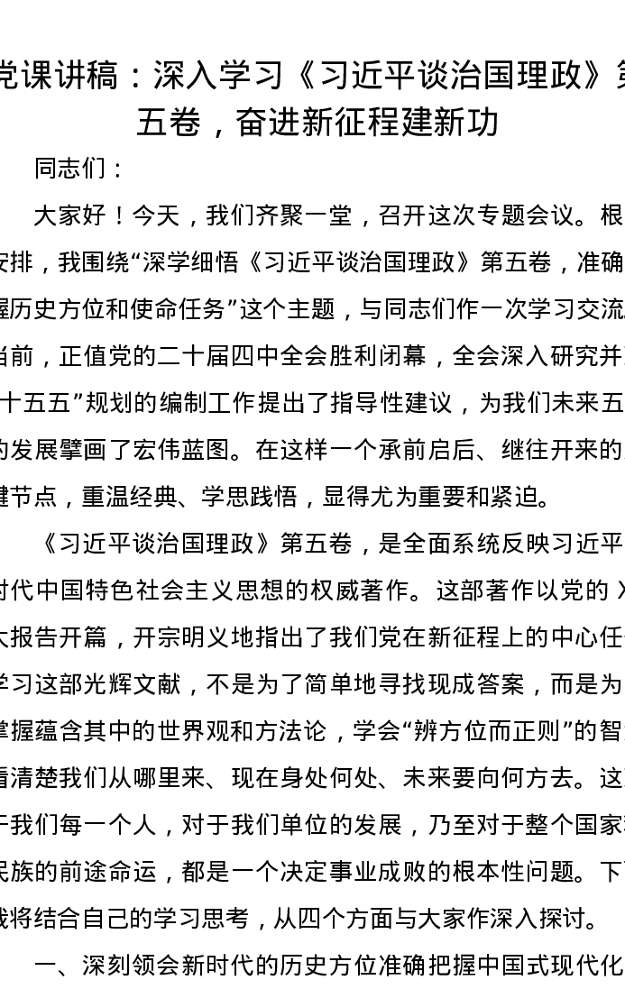 党课讲稿:深入学习《习近平谈治国理政》第五卷,奋进新征程建新功