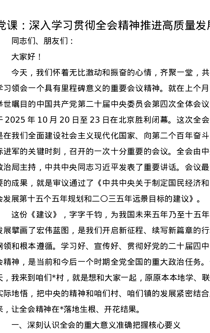 党课讲稿:深入学习贯彻二十届四中全会精神 推进高质量发展