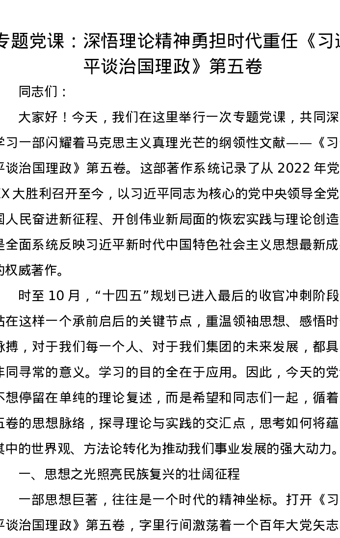 专题党课:深悟理论精神勇担时代重任《习近平谈治国理政》第五卷