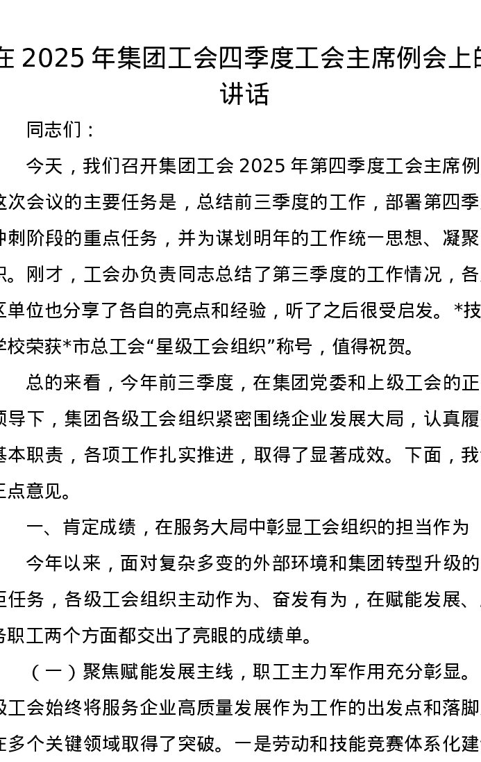 在2025年集团工会四季度工会主席例会上的讲话