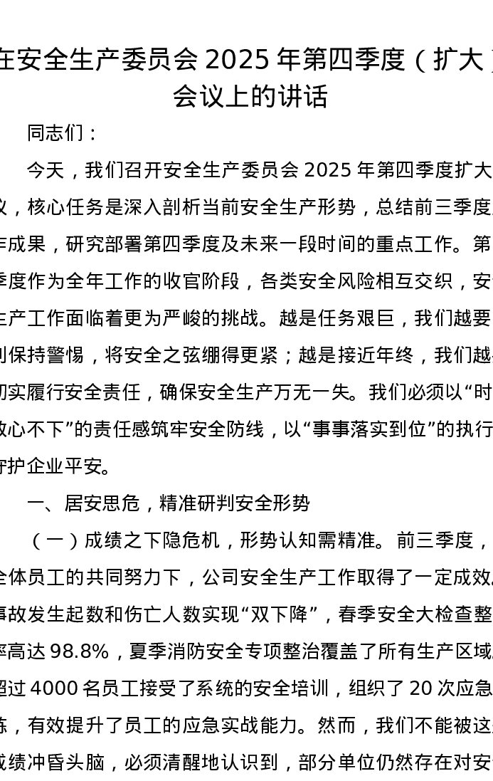 在安全生产委员会2025年第四季度(扩大)会议上的讲话