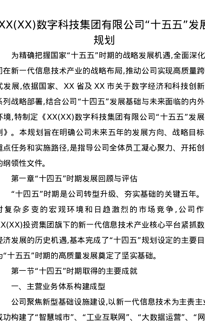XX(XX)数字科技集团有限公司“十五五”发展规划