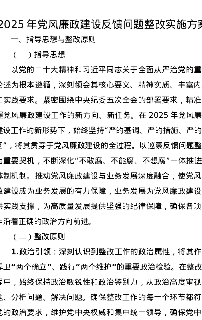 2025年党风廉政建设反馈问题整改实施方案