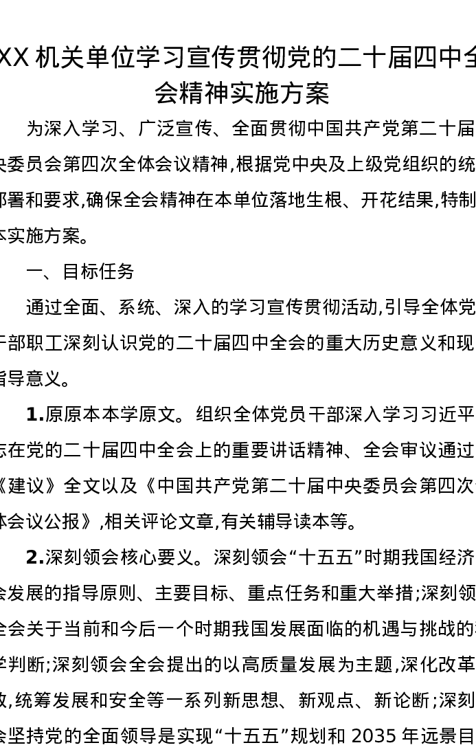 XX机关单位学习宣传贯彻党的二十届四中全会精神实施方案