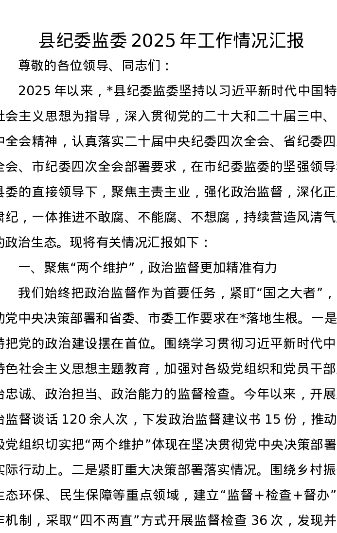 县纪委监委2025年工作情况汇报