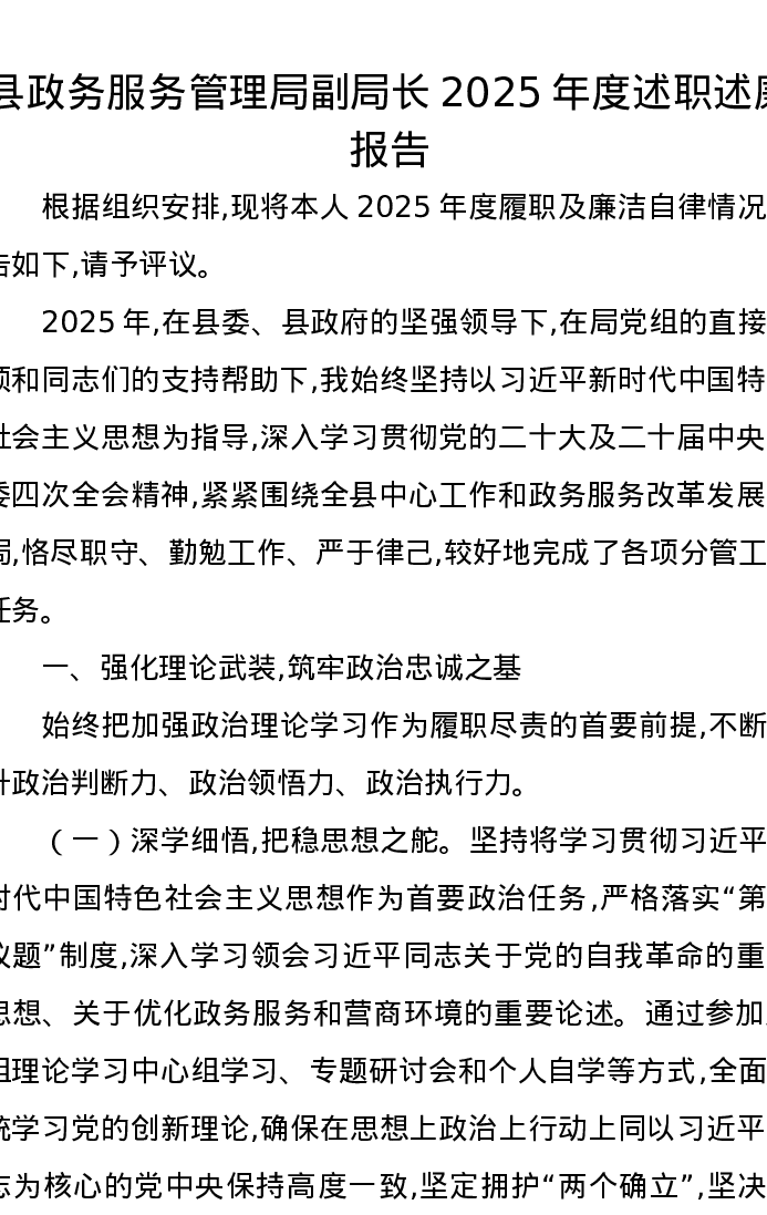 县政务服务管理局副局长2025年度述职述廉报告