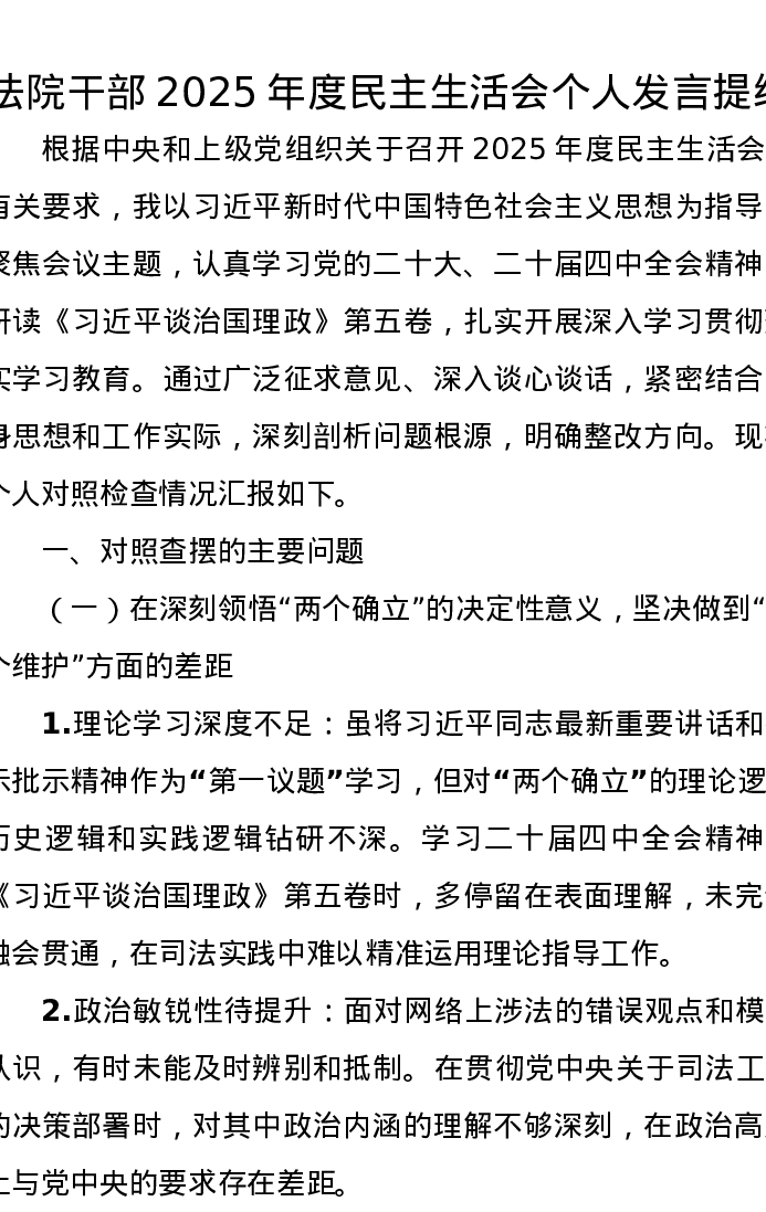 法院干部2025年度xxxxx个人发言提纲