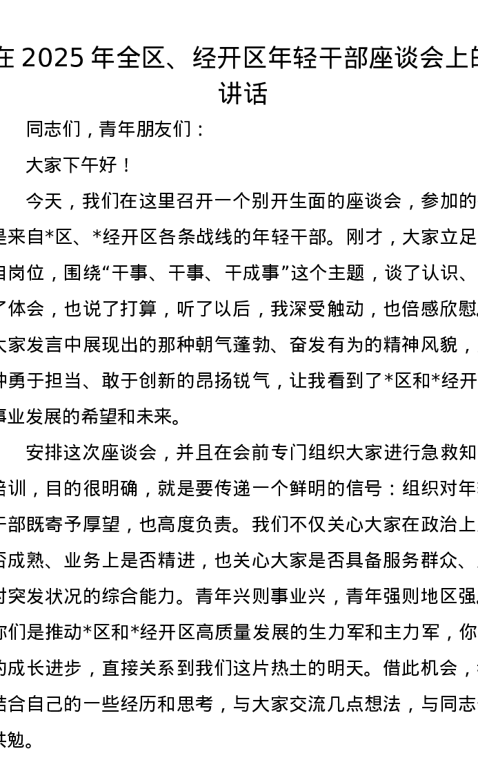 在2025年全区、经开区年轻干部座谈会上的讲话
