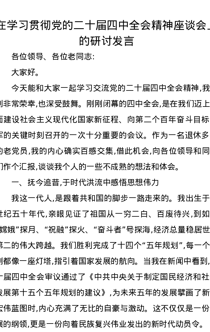 在学习贯彻党的二十届四中全会精神座谈会上的研讨发言