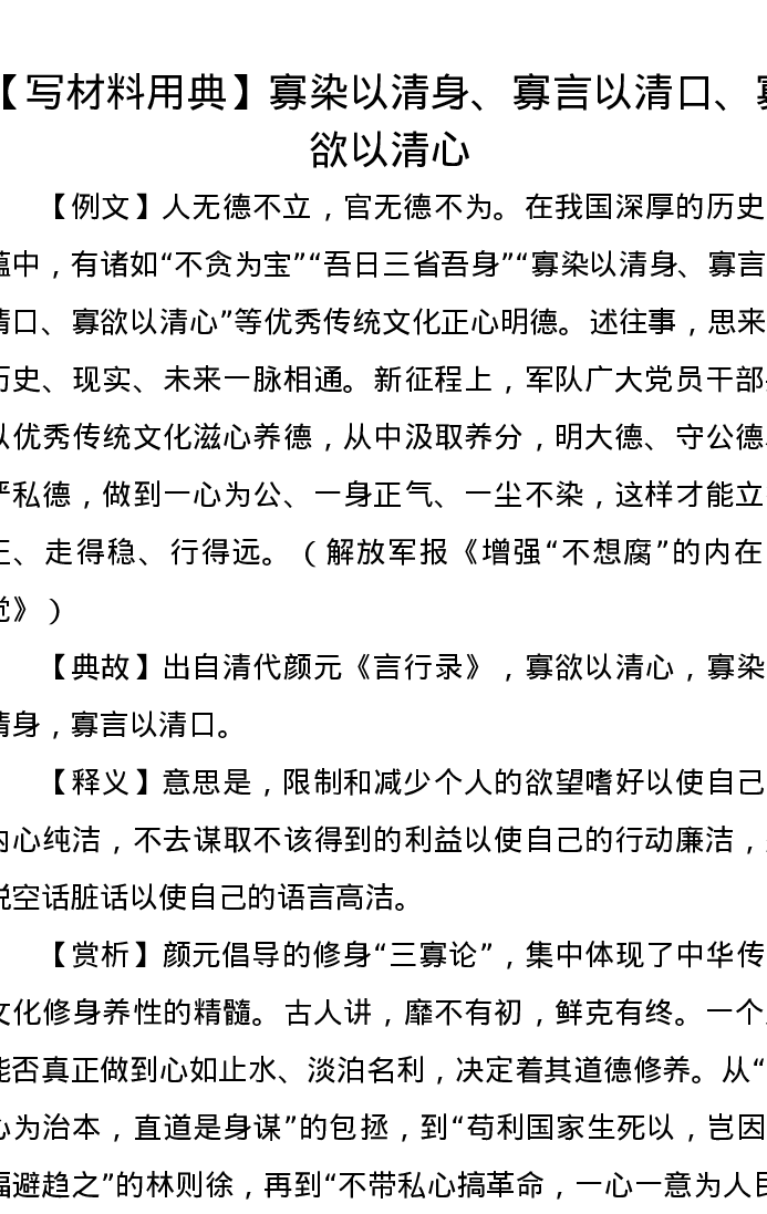 【写材料用典】寡染以清身、寡言以清口、寡欲以清心