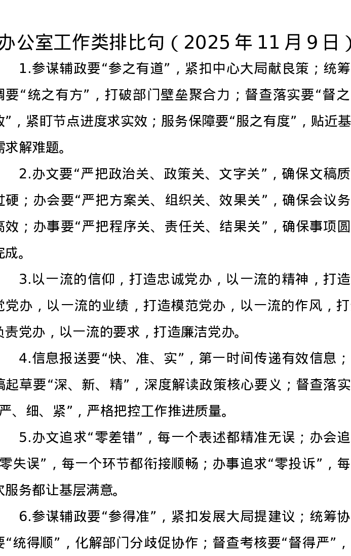办公室工作类排比句(2025年11月9日)