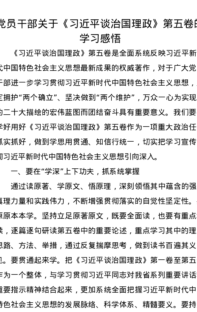 党员干部关于《习近平谈治国理政》第五卷的学习感悟