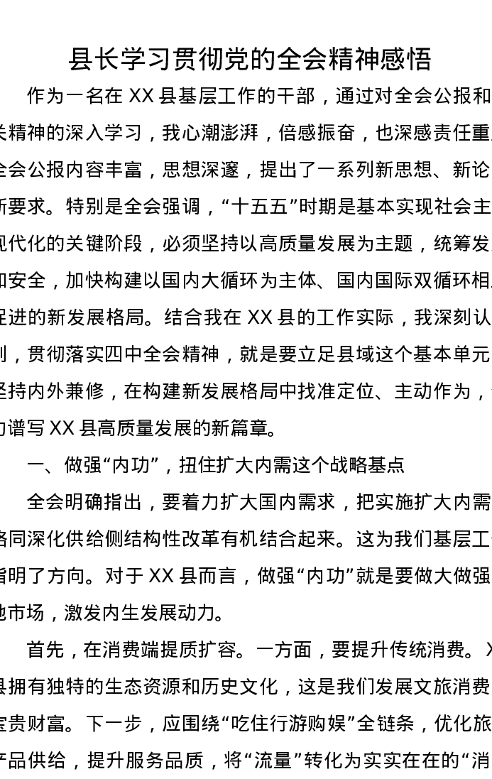 县长学习贯彻党的二十届四中全会精神心得感悟