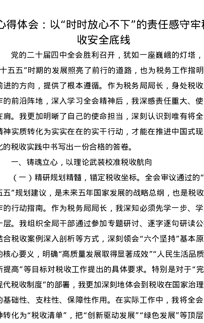 心得体会:以“时时放心不下”的责任感守牢税收安全底线