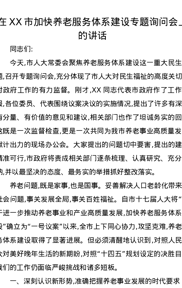 在XX市加快养老服务体系建设专题询问会上的讲话