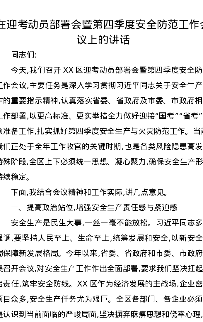 在迎考动员部署会暨第四季度安全防范工作会议上的讲话