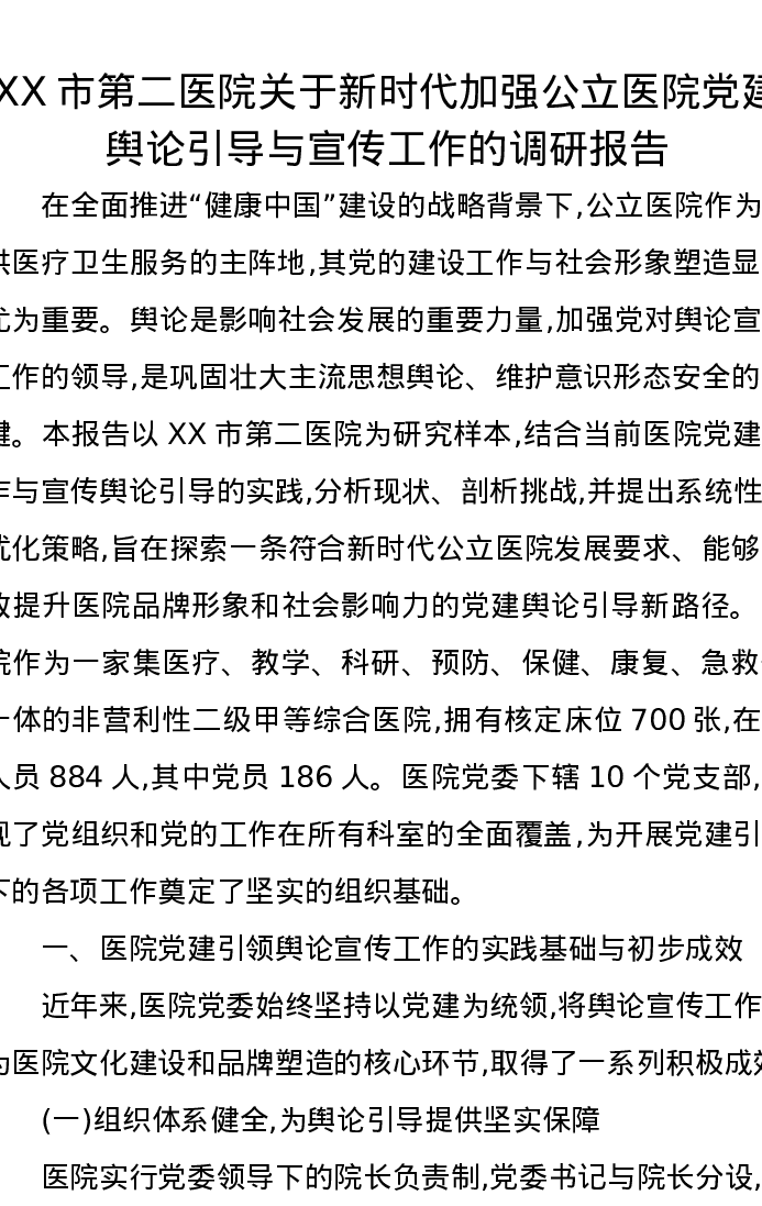 XX市第二医院关于新时代加强公立医院党建舆论引导与宣传工作的调研报告