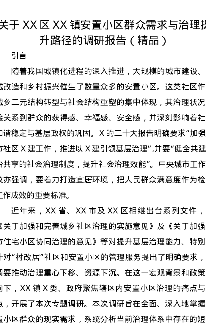 关于XX区XX镇安置小区群众需求与治理提升路径的调研报告(精品)