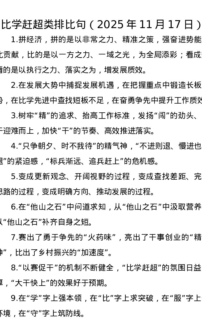 比学赶超类排比句(2025年11月17日)
