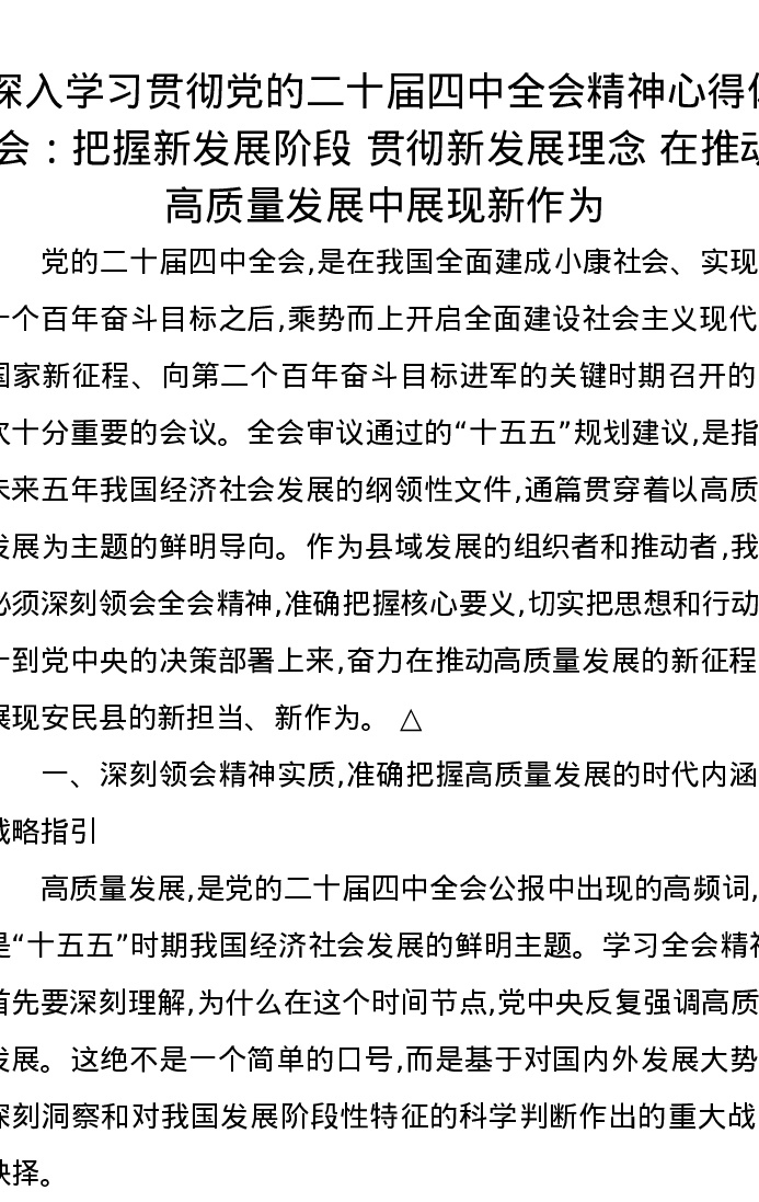 深入学习贯彻党的二十届四中全会精神心得体会:把握新发展阶段 贯彻新发展理念 在推动高质量发展中展现新作为