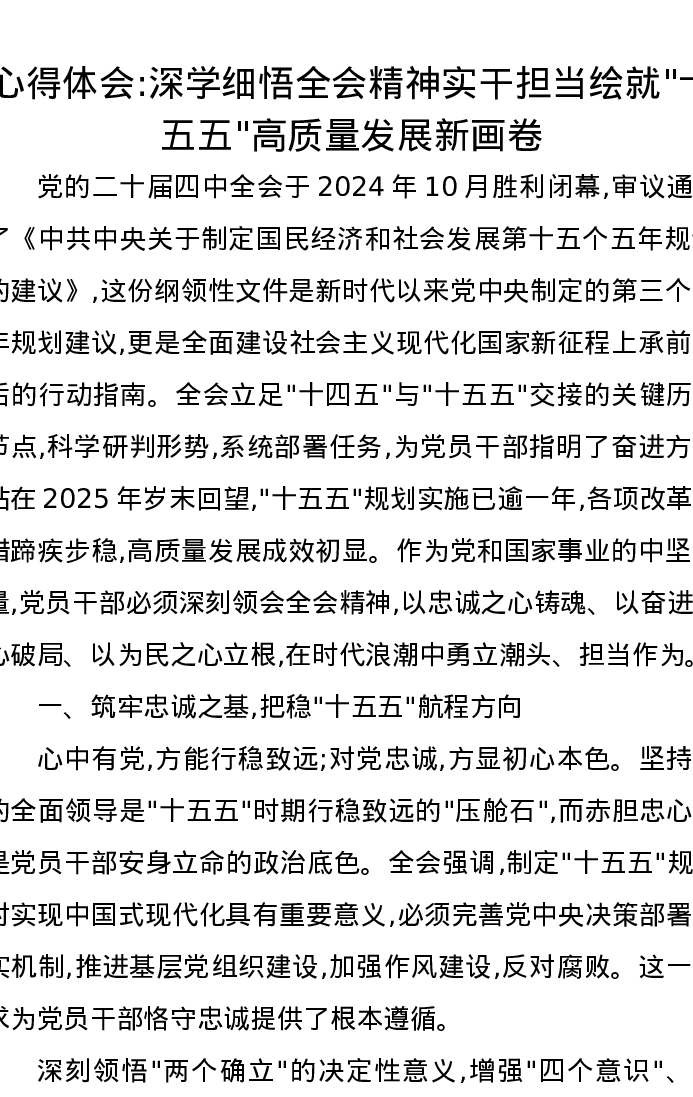 心得体会:深学细悟全会精神实干担当绘就十五五高质量发展新画卷