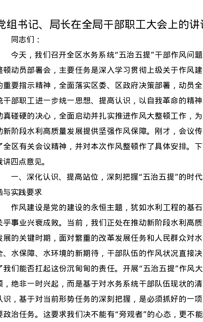 党组书记、局长在全局干部职工大会上的讲话