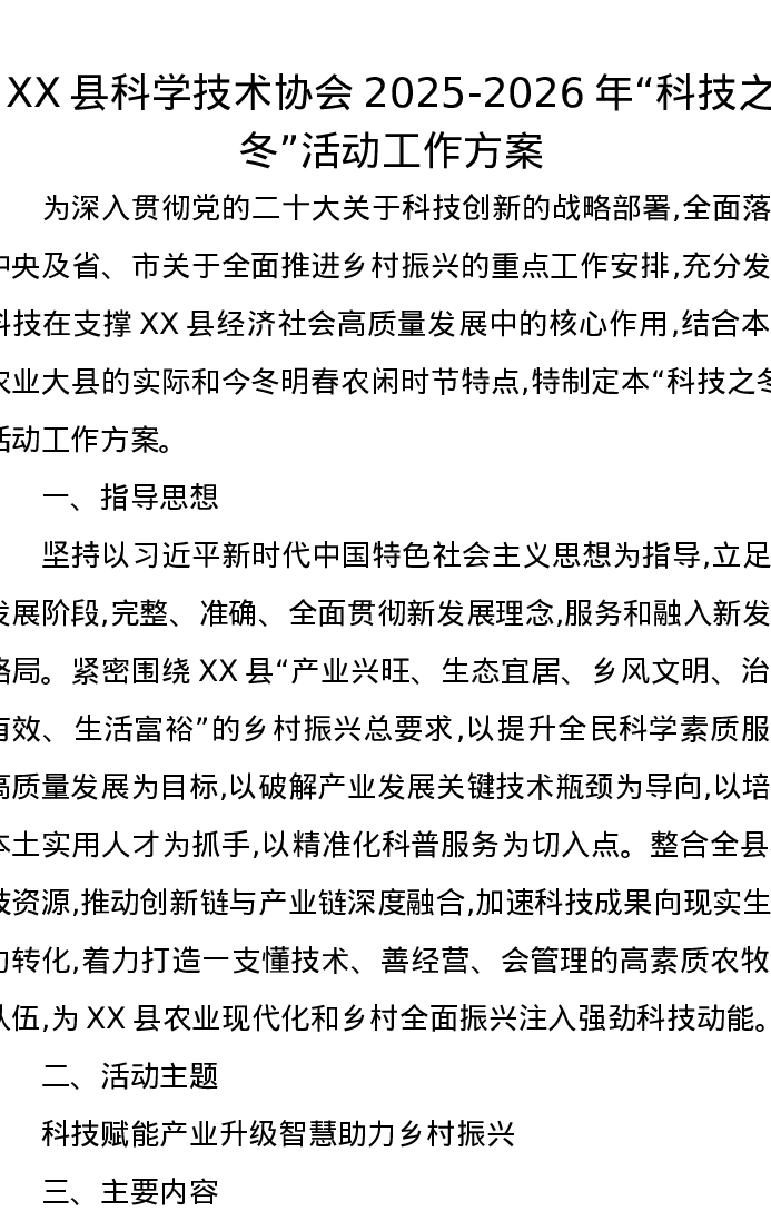 XX县科学技术协会2025-2026年“科技之冬”活动工作方案
