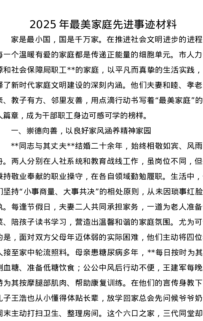 2025年最美家庭先进事迹材料