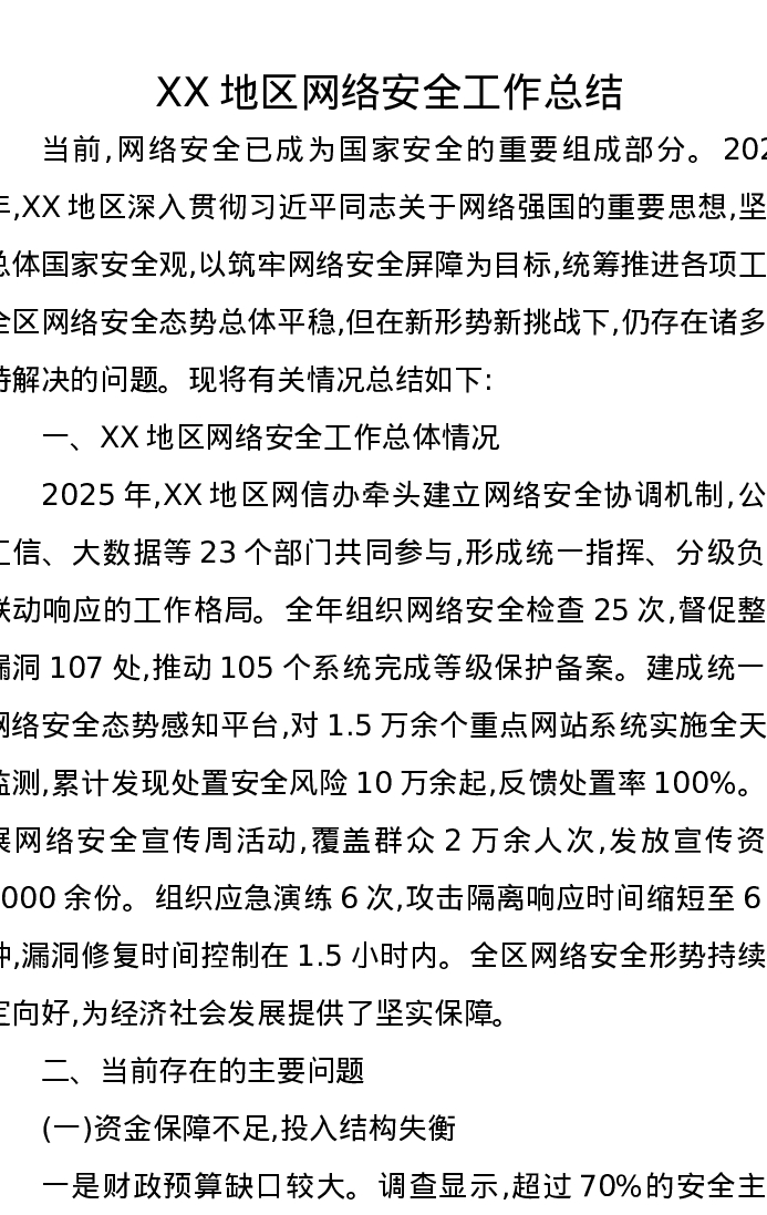 XX地区网络安全工作总结