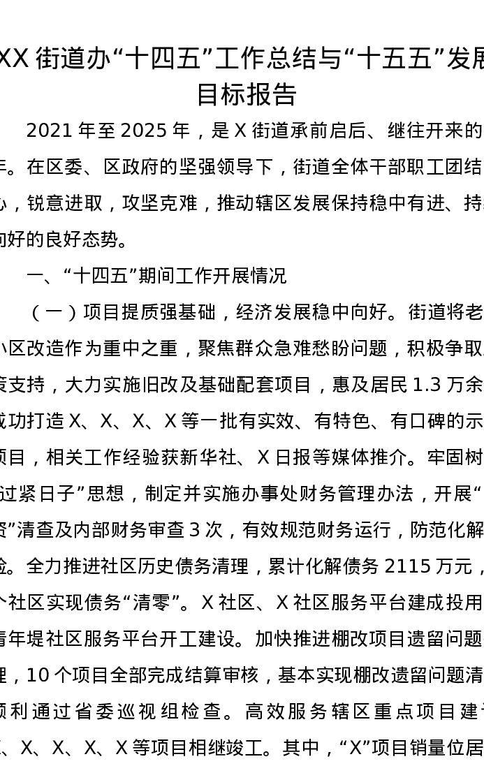 XX街道办“十四五”工作总结与“十五五”发展目标报告