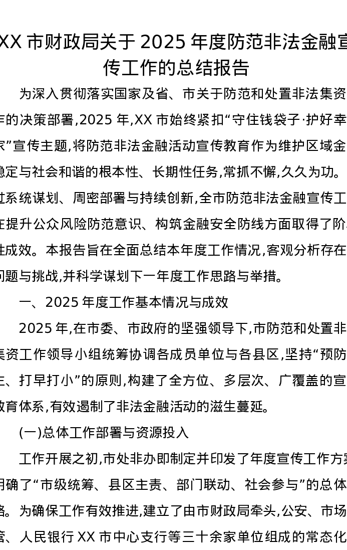 XX市财政局关于2025年度防范非法金融宣传工作的总结报告